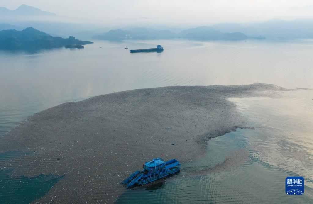 今年汛后三峽水庫蓄水至175米水位以后,水庫兩岸消落帶上的枯枝、秸稈、塑料等漂浮物聚集江面。位于三峽壩上庫首的湖北省宜昌市秭歸縣積極組織清漂作業人員和機械作業船舶,進行全天候攔截清理,以確保三峽水庫水質、船舶行駛和三峽樞紐運行安全。
