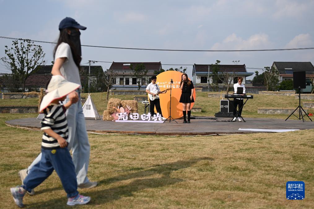 11月4日,歌手在南潯區(qū)雙林鎮(zhèn)萬畝稻蝦綜合種養(yǎng)示范區(qū)的稻田音樂會(huì)上演唱。