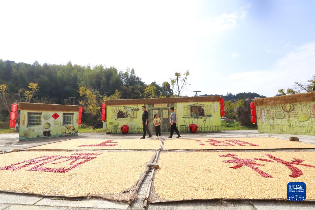 秋收時節,農民利用晴好天氣在房前屋后晾曬農作物,一派豐收景象。