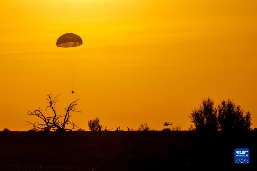 10月31日,神舟十六號載人飛船返回艙在東風著陸場成功著陸。