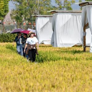 11月3日,游客在位于黃梅縣大河鎮的袁夫稻田游玩。