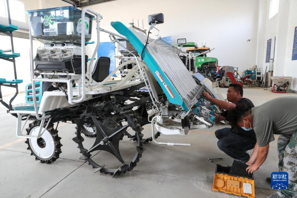 11月4日,技術員在南通市通州區十總鎮育民村農場保養無人插秧機設備。