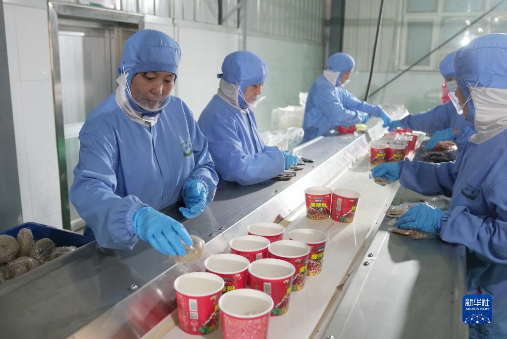 11月4日,工人在河北省盧龍縣一家甘薯深加工企業的酸辣粉生產線上工作。