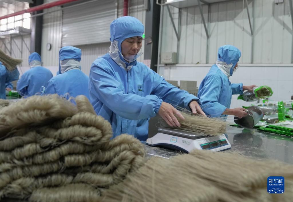 11月4日,工人在河北省盧龍縣一家甘薯深加工企業的粉條生產車間工作。