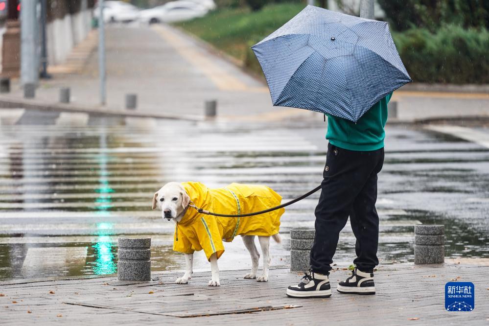 11月5日,一名北京市民在遛狗。