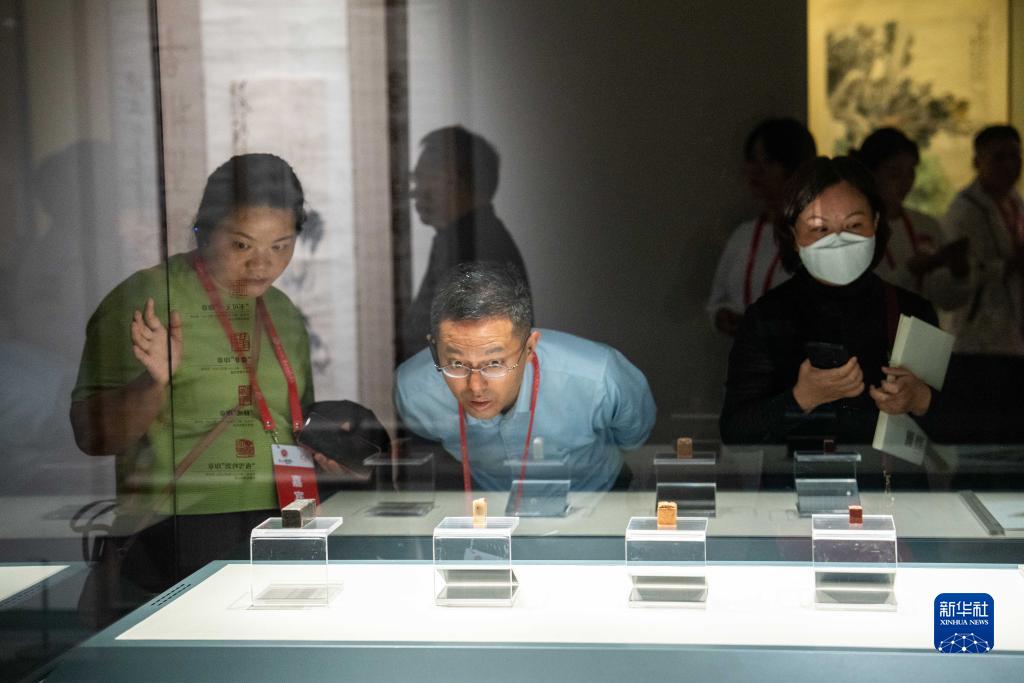 11月5日,在湘潭市博物館,觀眾在觀看齊白石印章作品。