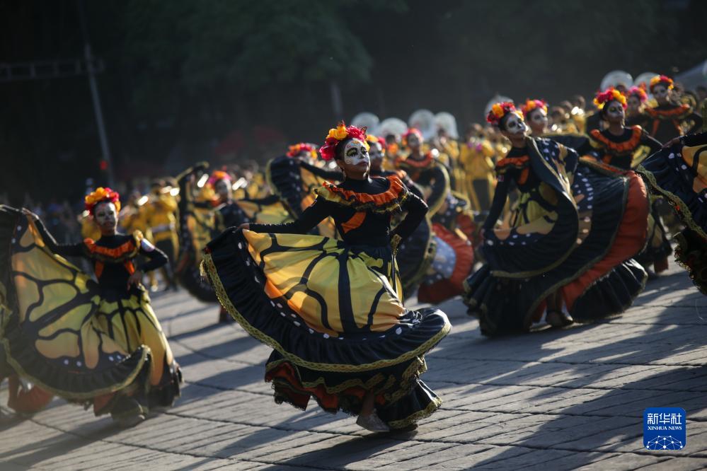 11月4日,在墨西哥首都墨西哥城,演員參加亡靈節(jié)游行。