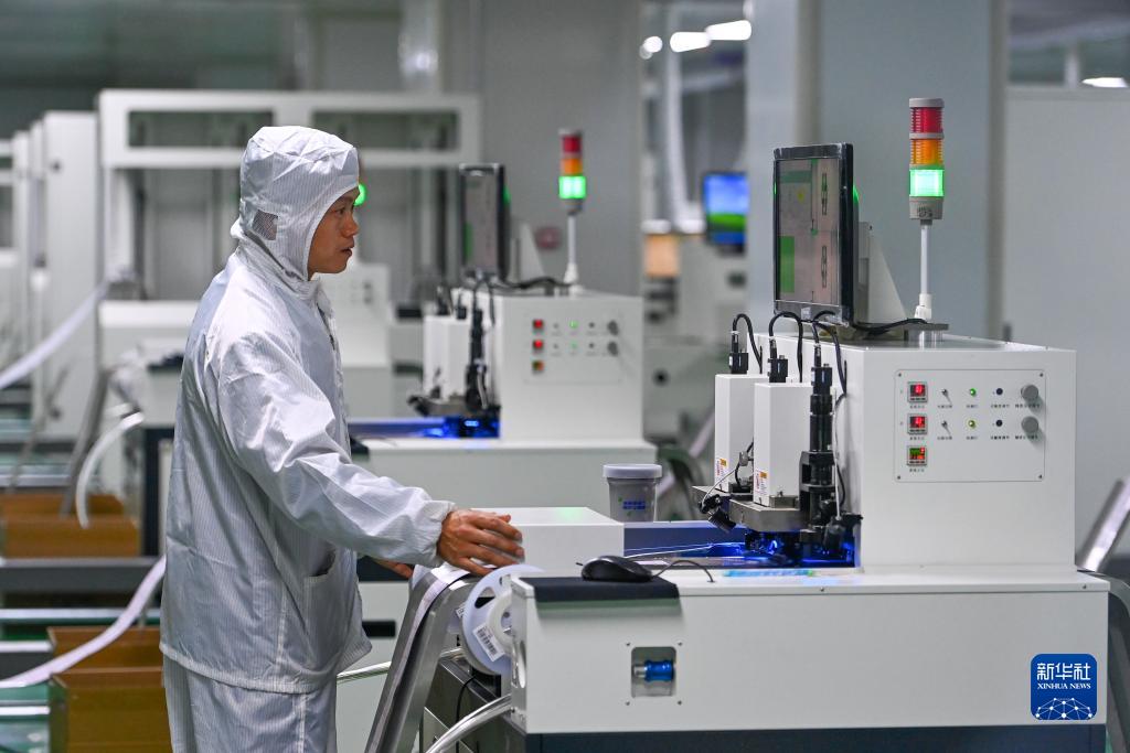 工作人員在新疆喀什綜合保稅區(qū)內的一家電子科技公司生產車間作業(yè)(11月4日攝)。
