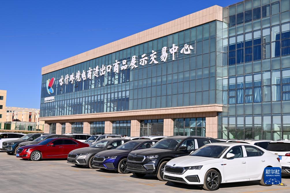 這是11月4日拍攝的新疆喀什跨境電商進出口商品展示交易中心。