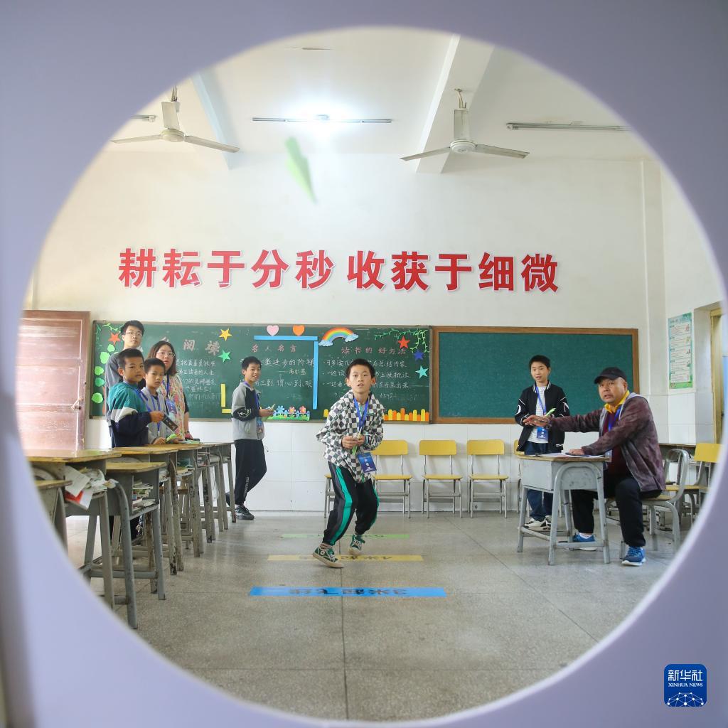 11月5日,在首屆青少年科技體育節(jié)上,參賽學生參加紙飛機靶標賽。