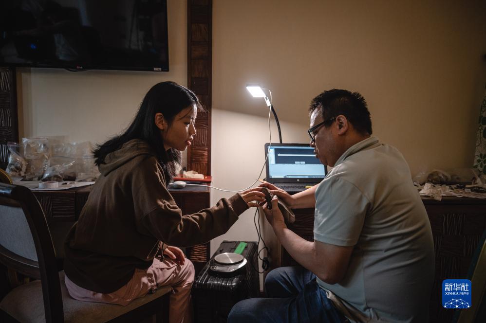 11月3日,中肯聯合考古隊隊員彭勝藍(左)與顧雪軍在位于肯尼亞巴林戈郡馬里加特鎮的臨時駐地內進行交流。