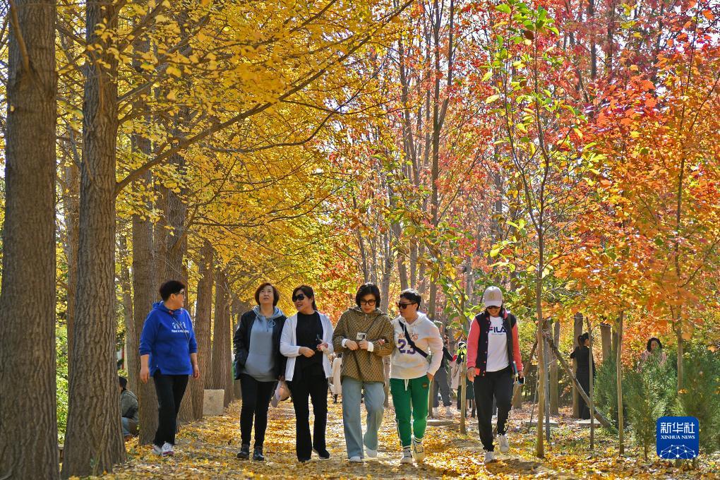 11月4日,在山東省煙臺市福山區(qū)東廳街道,游客在大自然園林觀賞秋景。