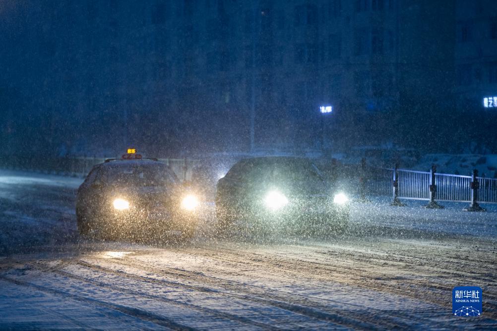 11月6日,在哈爾濱市香坊區,車輛在雪中行駛。