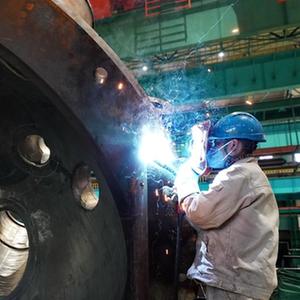 11月5日,工人在秦皇島經(jīng)濟(jì)技術(shù)開發(fā)區(qū)天威保變(秦皇島)變壓器有限公司的生產(chǎn)車間工作。