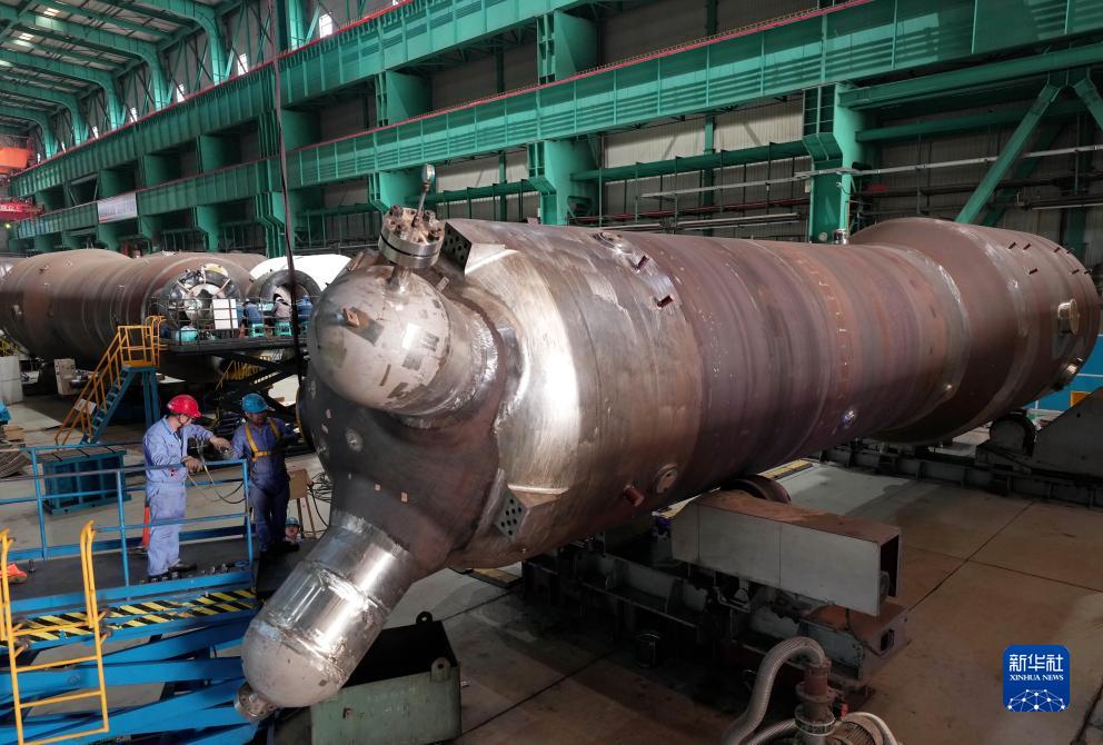 11月5日,工人在秦皇島經濟技術開發區哈電集團(秦皇島)重型裝備有限公司的生產車間工作。