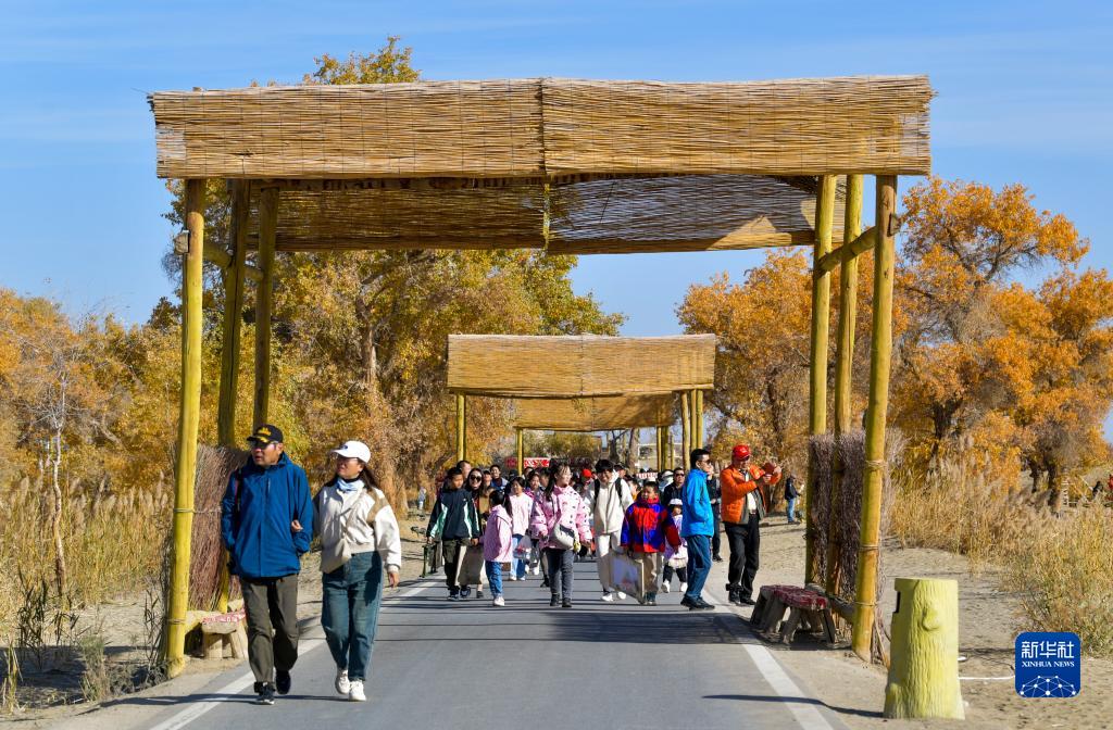 游客在新疆尉犁縣羅布人村寨景區(qū)游覽觀光(11月4日攝)。