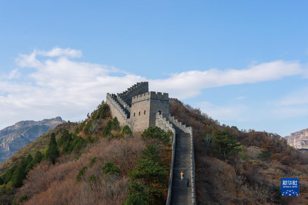位于天津市薊州區(qū)北部山區(qū)的黃崖關長城被秋葉點綴,美景如畫。