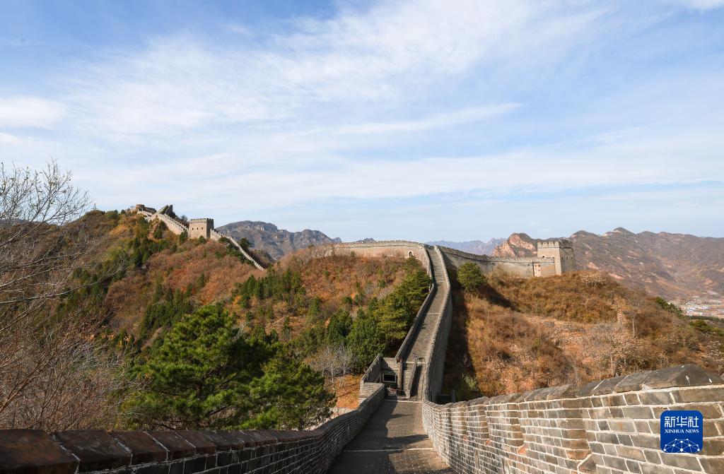 位于天津市薊州區北部山區的黃崖關長城被秋葉點綴,美景如畫。