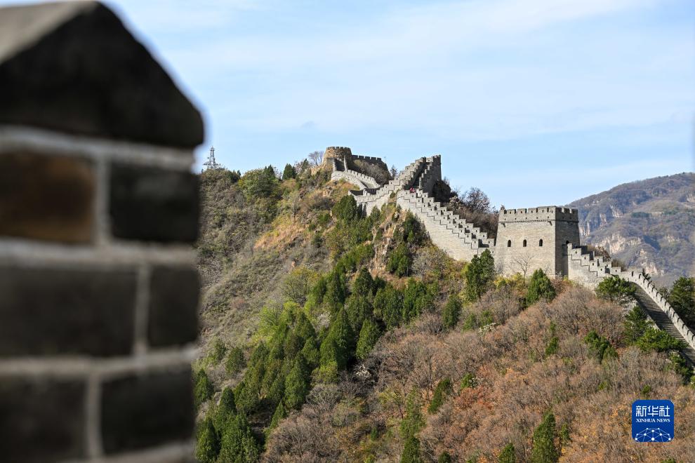 位于天津市薊州區北部山區的黃崖關長城被秋葉點綴,美景如畫。