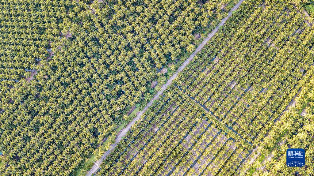 這是11月3日在泰國叻武里府丹嫩沙多拍攝的椰子園(無人機照片)。