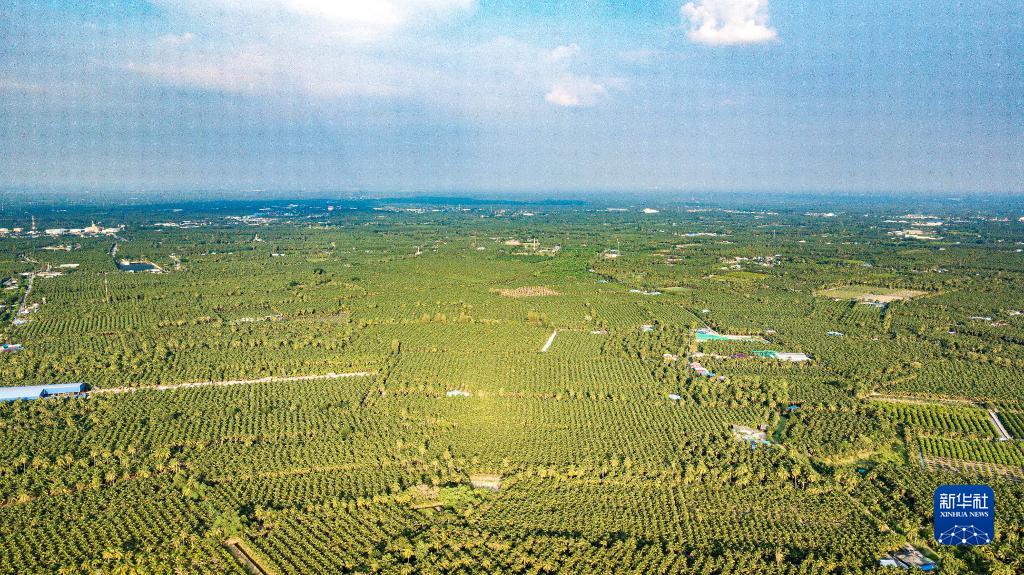 這是11月3日在泰國叻武里府丹嫩沙多拍攝的椰子園(無人機照片)。