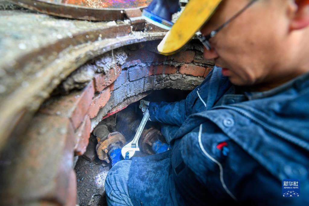 11月6日,吉林省春城熱力股份有限公司永昌事業(yè)部百匯站工作人員在檢修供熱管線。