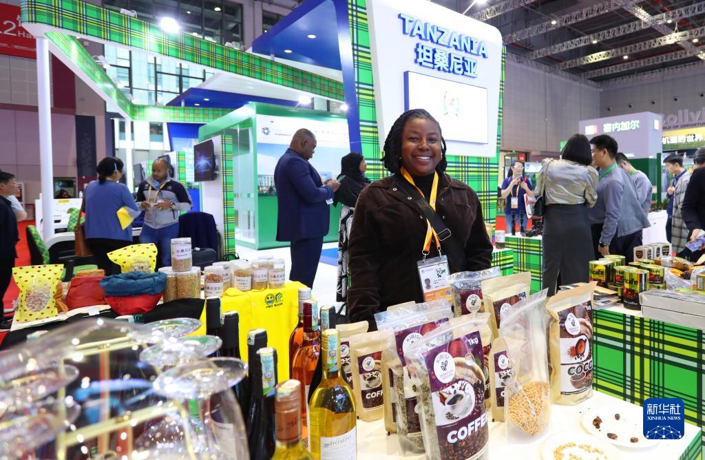 11月6日,來自坦桑尼亞的艾斯黛拉站在坦桑尼亞國家館展臺前。今天是艾斯黛拉來中國的第二天,她表示參加進博會讓她感到很高興。艾斯黛拉說等進博會閉幕后她要在上海游覽一下,希望自己的公司能在中國找到合作伙伴。