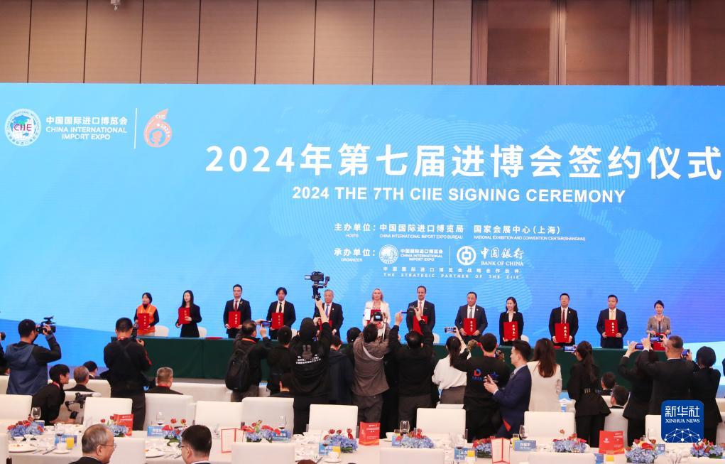 11月6日拍攝的2024年第七屆進(jìn)博會(huì)簽約儀式現(xiàn)場(chǎng)。