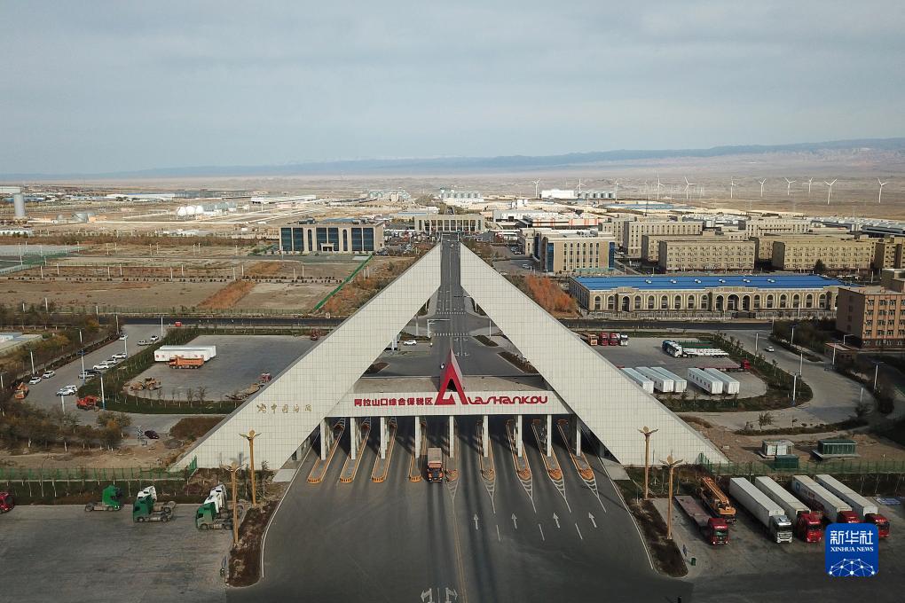 這是阿拉山口綜合保稅區(無人機照片,11月5日攝)。