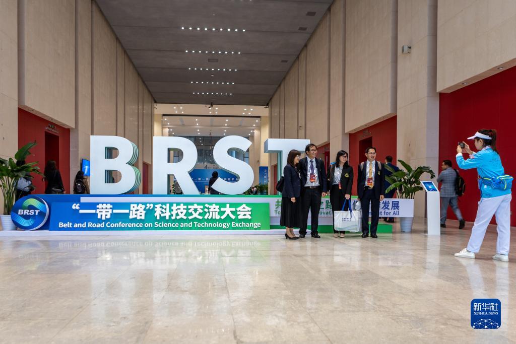 11月6日,參會者在首屆“一帶一路”科技交流大會會場合影。