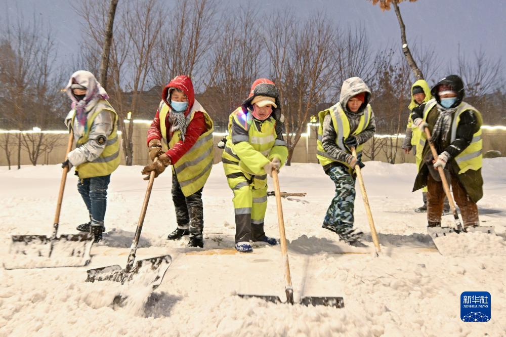11月6日,工人在哈爾濱友誼西路上鏟除積雪。