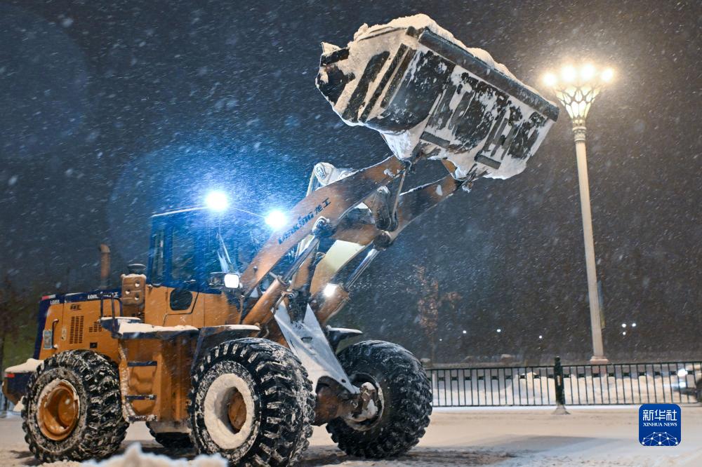 11月6日,一輛鏟車在哈爾濱友誼西路上鏟除積雪。