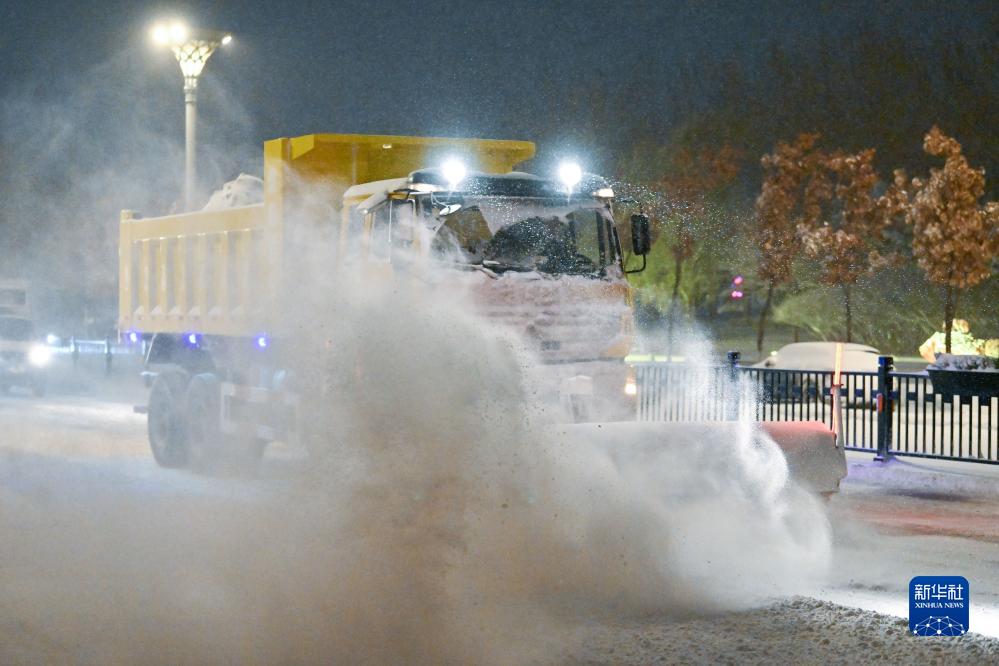 11月6日,清雪車在哈爾濱友誼西路上清除路面積雪。