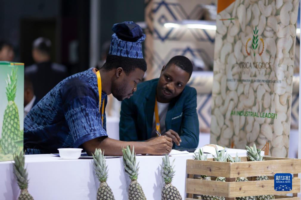 11月6日,在第六屆進(jìn)博會(huì)食品及農(nóng)產(chǎn)品展區(qū),貝寧投資和出口促進(jìn)局工作人員在交流整理客戶信息。