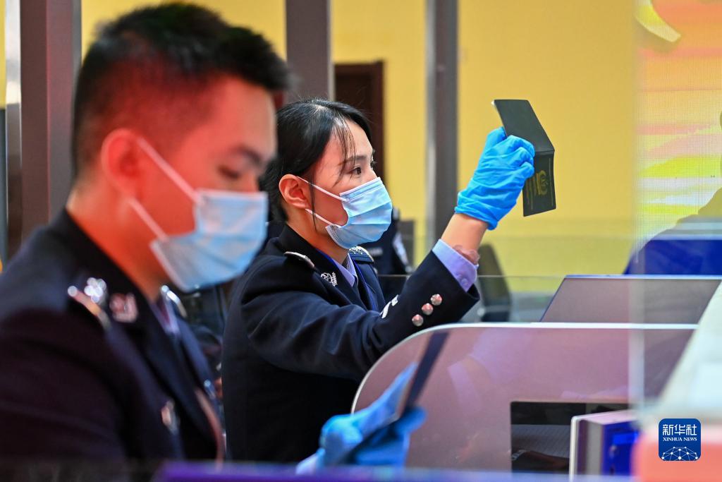 在新疆紅其拉甫口岸聯(lián)檢大廳,紅其拉甫邊檢站民警為出境旅客辦理邊檢手續(xù)(11月6日攝)。