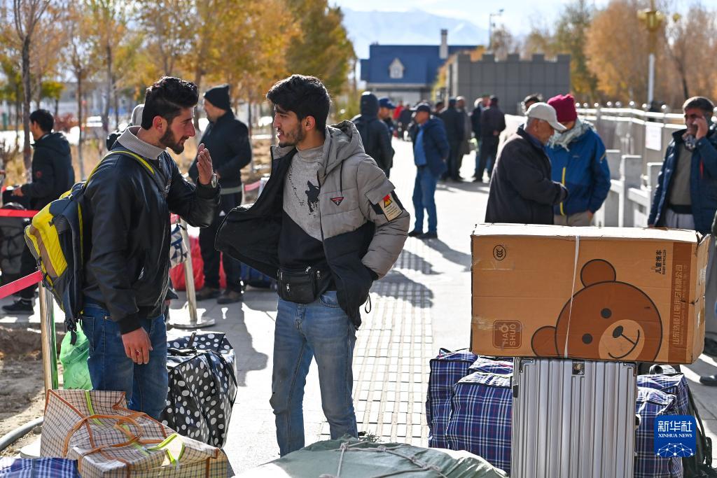 出境旅客在新疆紅其拉甫口岸等候辦理通關手續(11月6日攝)。