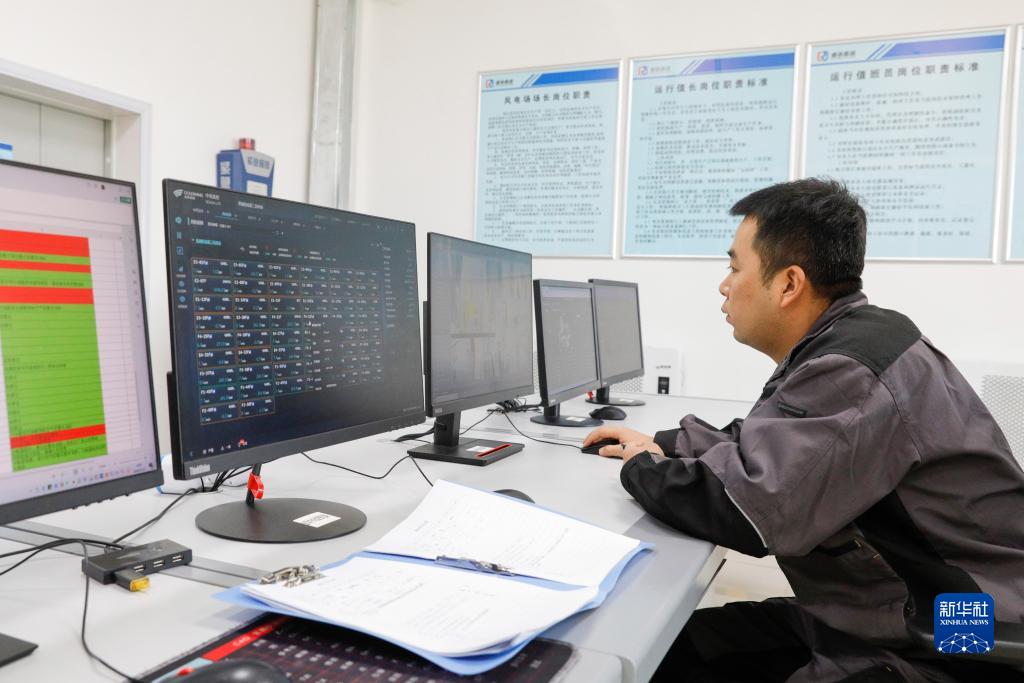 11月7日,在甘肅省酒泉市瓜州縣泰源橋南第三風電場,工作人員在中控室監(jiān)測風電場運行情況。