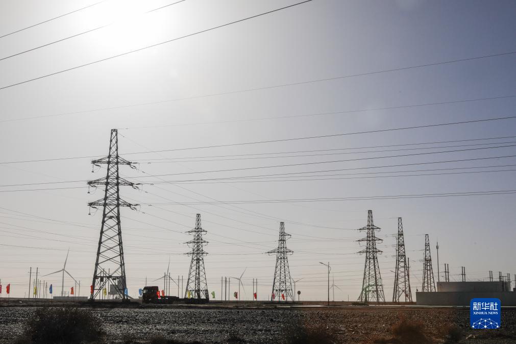這是11月7日在甘肅省酒泉市瓜州縣拍攝的輸電線路。