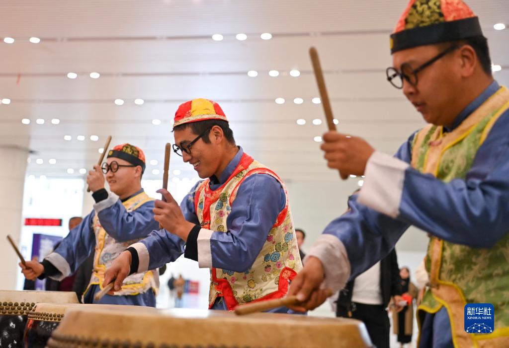 11月7日,演員在2023黃河非遺大展上表演絳州鼓樂。