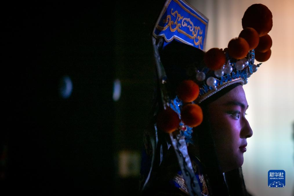 10月28日,2005年出生的楚劇演員魏舉威即將登臺表演《秦瓊表功》。