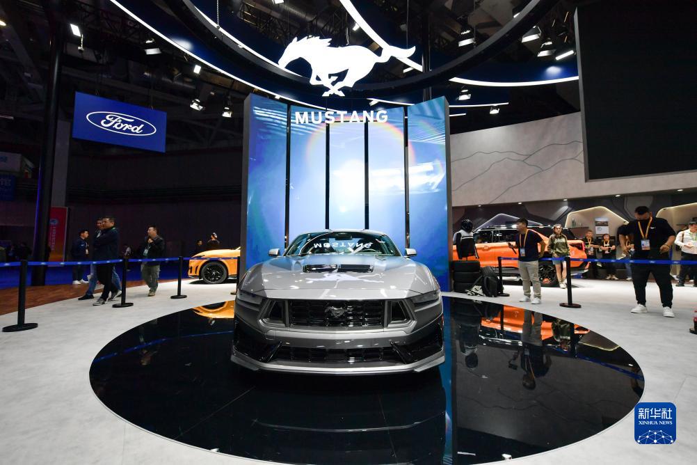 11月6日在第六屆進(jìn)博會(huì)汽車展區(qū)福特汽車展臺(tái)拍攝的Mustang Dark Horse跑車。