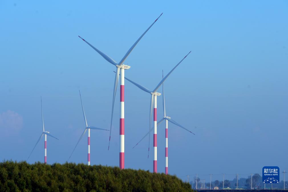 這是10月30日拍攝的孟加拉國科克斯巴扎爾風電項目現場。