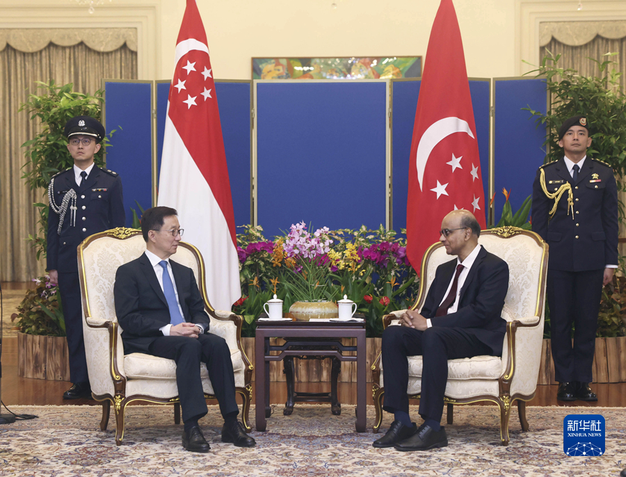 11月8日,國家副主席韓正在新加坡會見新加坡總統尚達曼。