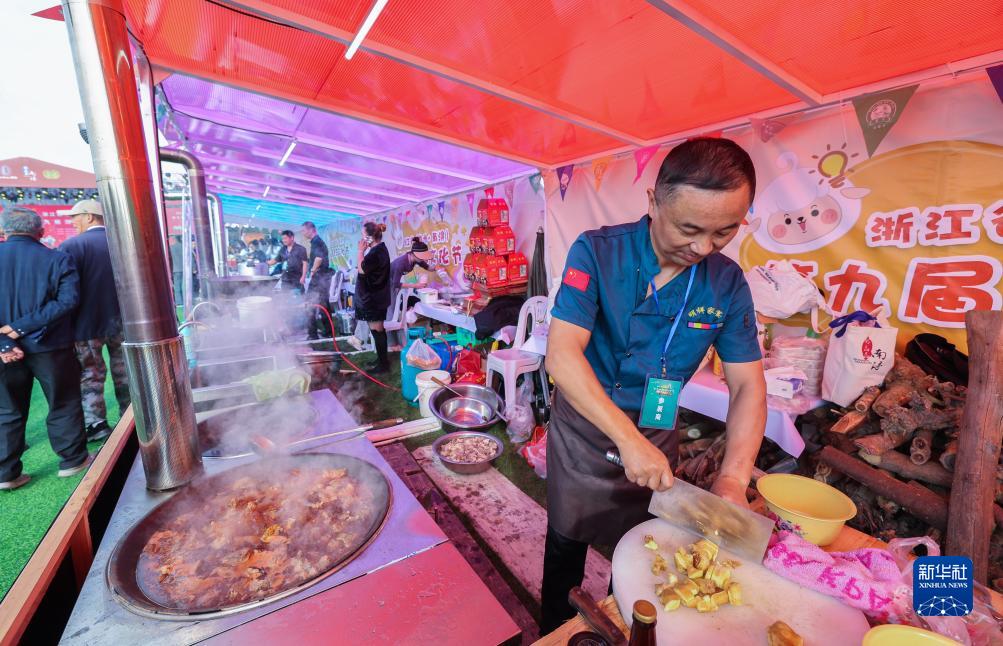 11月9日,在湖羊文化節現場,廚師在烹飪羊肉。