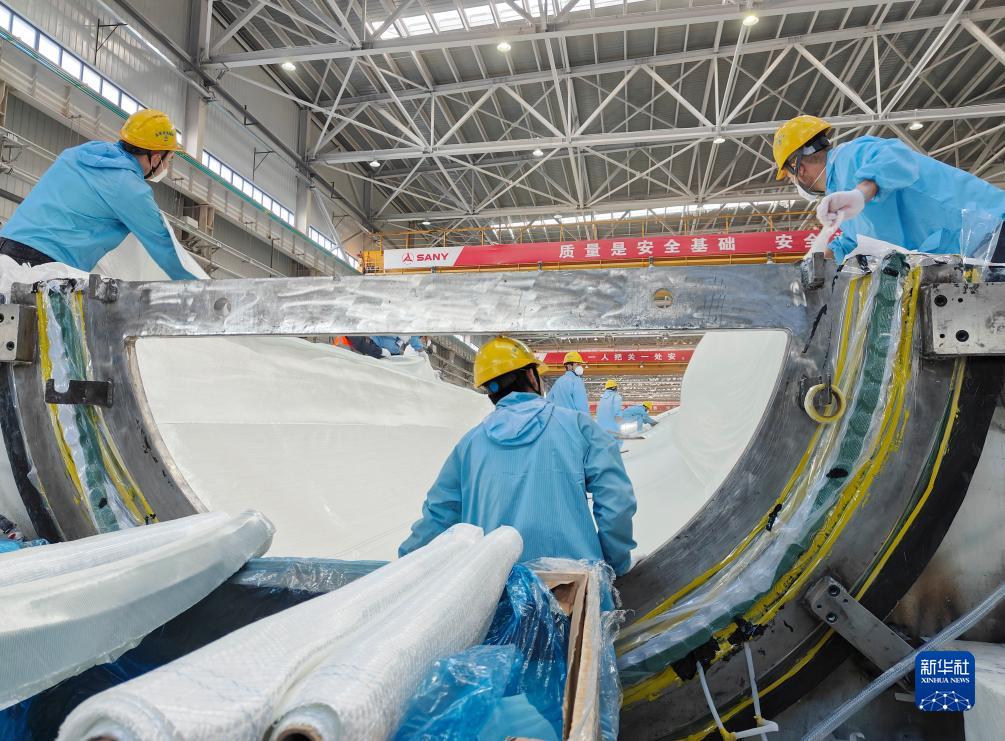 11月8日,在三一(塔城)風(fēng)電設(shè)備有限公司,工人在車間加工風(fēng)機(jī)葉片。