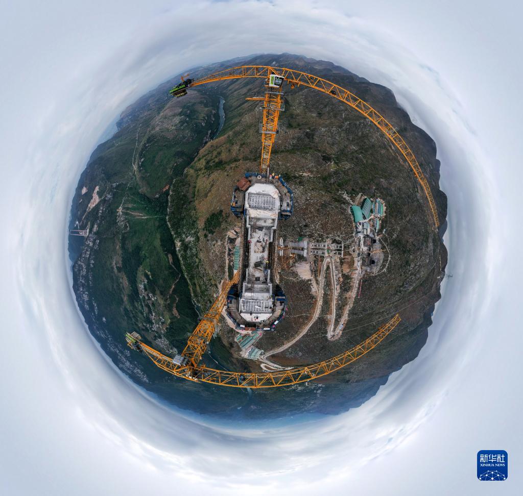 這是11月8日拍攝的貴州六安高速花江峽谷大橋建設現場(無人機全景照片)。