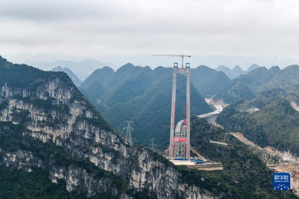 這是11月8日拍攝的貴州六安高速花江峽谷大橋建設現場。