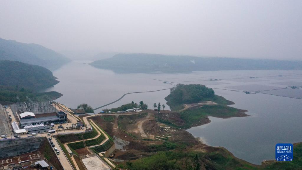 這是11月9日在印度尼西亞西爪哇省芝拉塔水庫(kù)拍攝的芝拉塔漂浮光伏項(xiàng)目升壓站和漂浮陣列(無(wú)人機(jī)照片)。