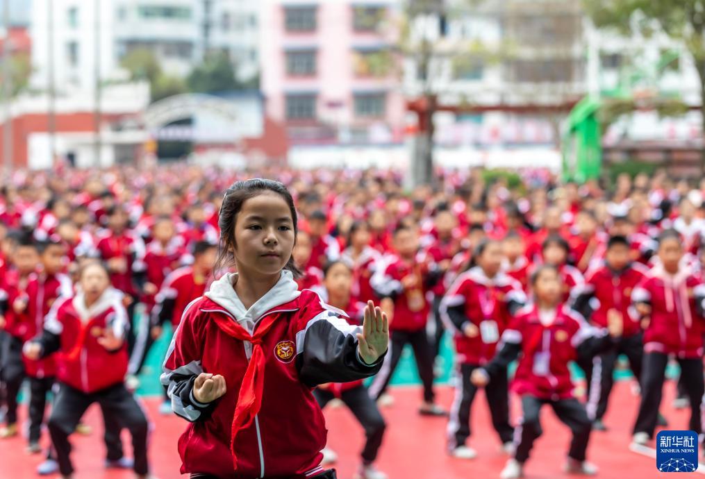 11月9日,在黃平縣新州鎮第二小學,學生在大課間做活動。