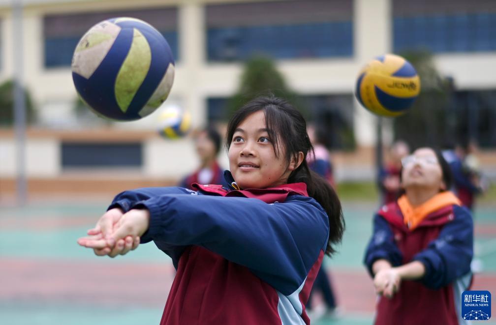 11月9日,黃平民族中學(xué)的學(xué)生在上排球課。